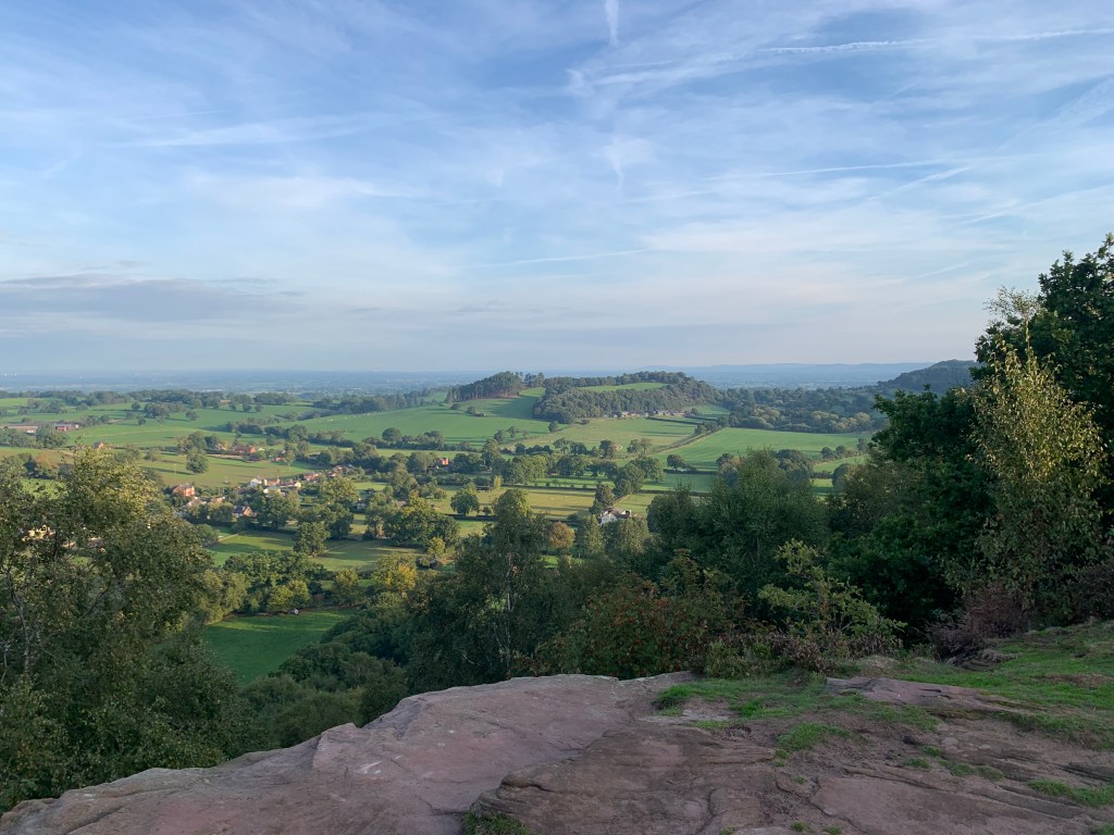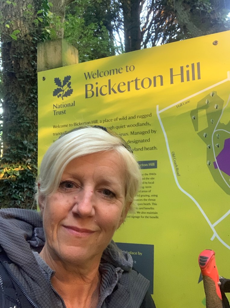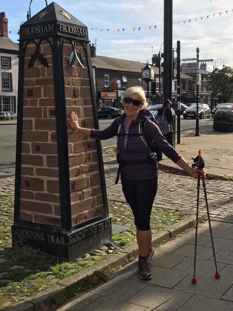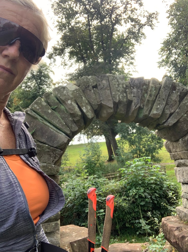 By 7.30am on the first day I was feeling very pleased with myself. I had made my sandwiches and flask of coffee, put make up on, got to Frodsham, taken a selfie at the Sandstone Trail monument and set off up the hill. All fine, until halfway up the hill I realised I hadn’t paid for the car park and Cheshire West don’t do pay by phone for that car park, so had to back track and then run up back up the hill again!! Anyway, got to Delamere in record time to meet up with loads of our lovely walkers, including two who then walked all the way to Beeston Castle with me. The Sandstone Trail is an absolutely stunning walk. I have done it before but walking some of the sections of it on my own made me realise just how really fabulous it is. The ancient woodlands combined with the numerous dramatic sandstone ridges with ever changing views, and undulating Cheshire farmland all combine to keep delighting all the senses at every twist and turn. This was actually a great day, but also potentially the toughest day due to the 2500 ft ascent. However, I got to Bickerton Church at 5.30pm, with just slightly tired legs, but otherwise all good. 22 or maybe 23 miles. 2500 ft ascent. 0 stiles, 0 blisters, 66 miles to go…….